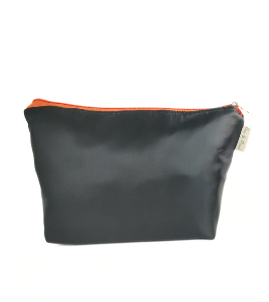 Women Solid Cosmetic Pouch / Travel makeup pouch / Travel organizer(Black Orange)