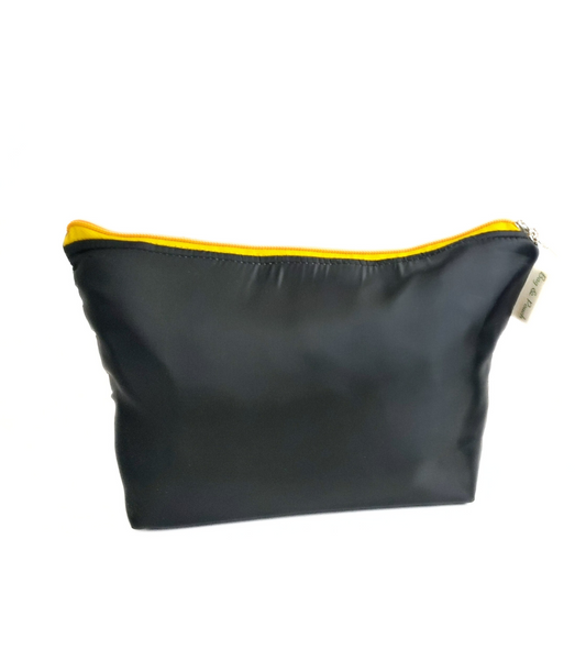 Women Solid Cosmetic Pouch / Travel makeup pouch / Travel organizer(Black Yellow)