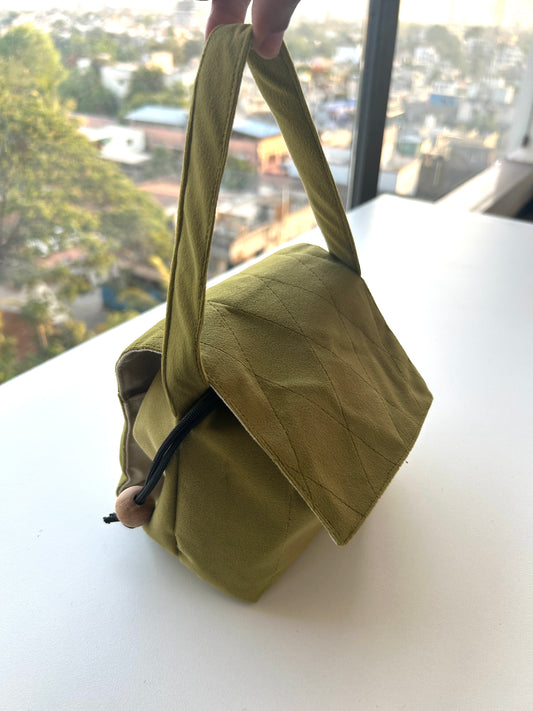 Olive Green Suede Mini Karrier Makeup Pouch