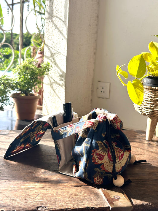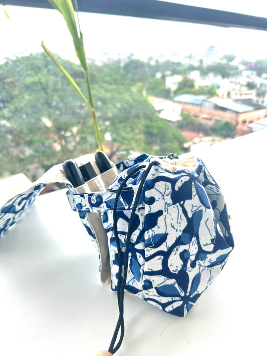Indigo Leaf Mini Karrier Makeup Pouch