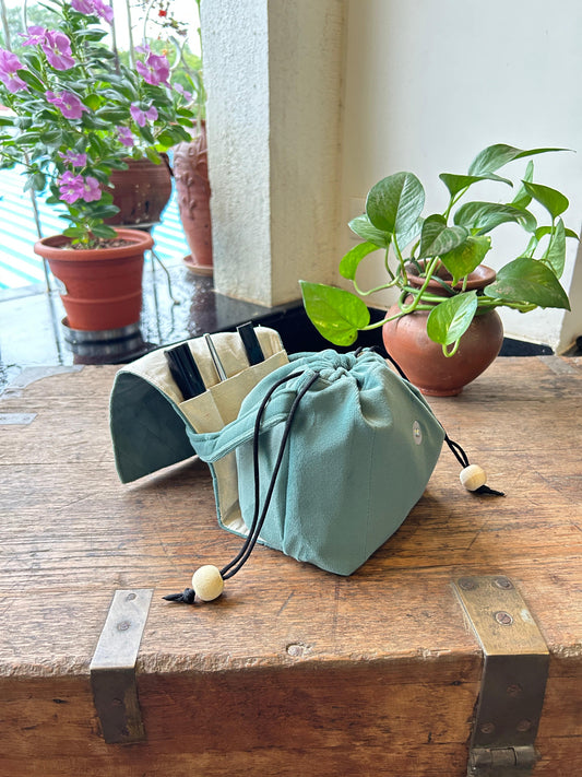 Green Oasis Cotton Mini Karrier Makeup Pouch