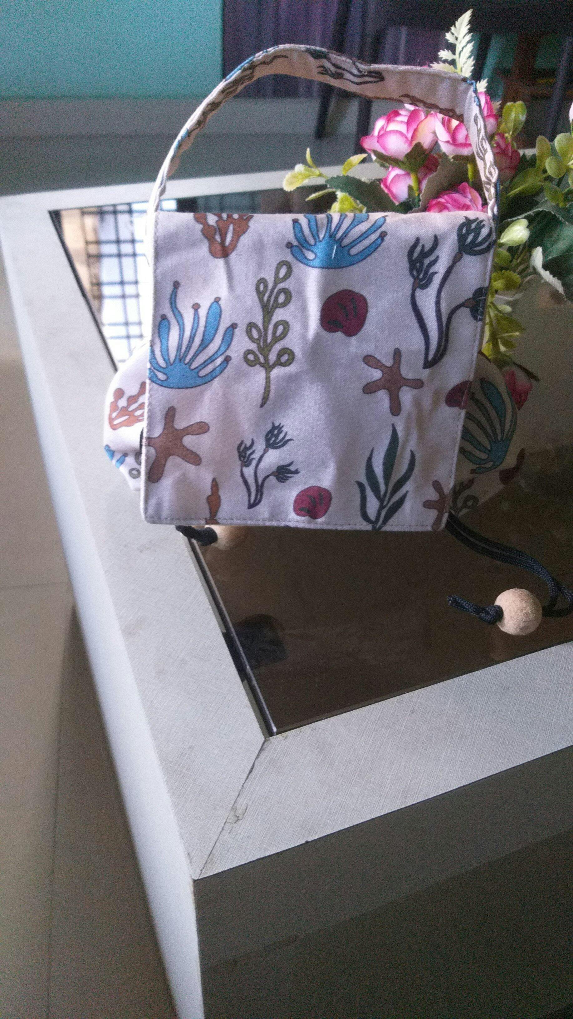 Unique designed cosmetic pouch/ makeup organizer made from pure cotton fabric. Put all your makeup/cosmetic essentials in it, tighten the string and easy to accommodate in your travel bag.