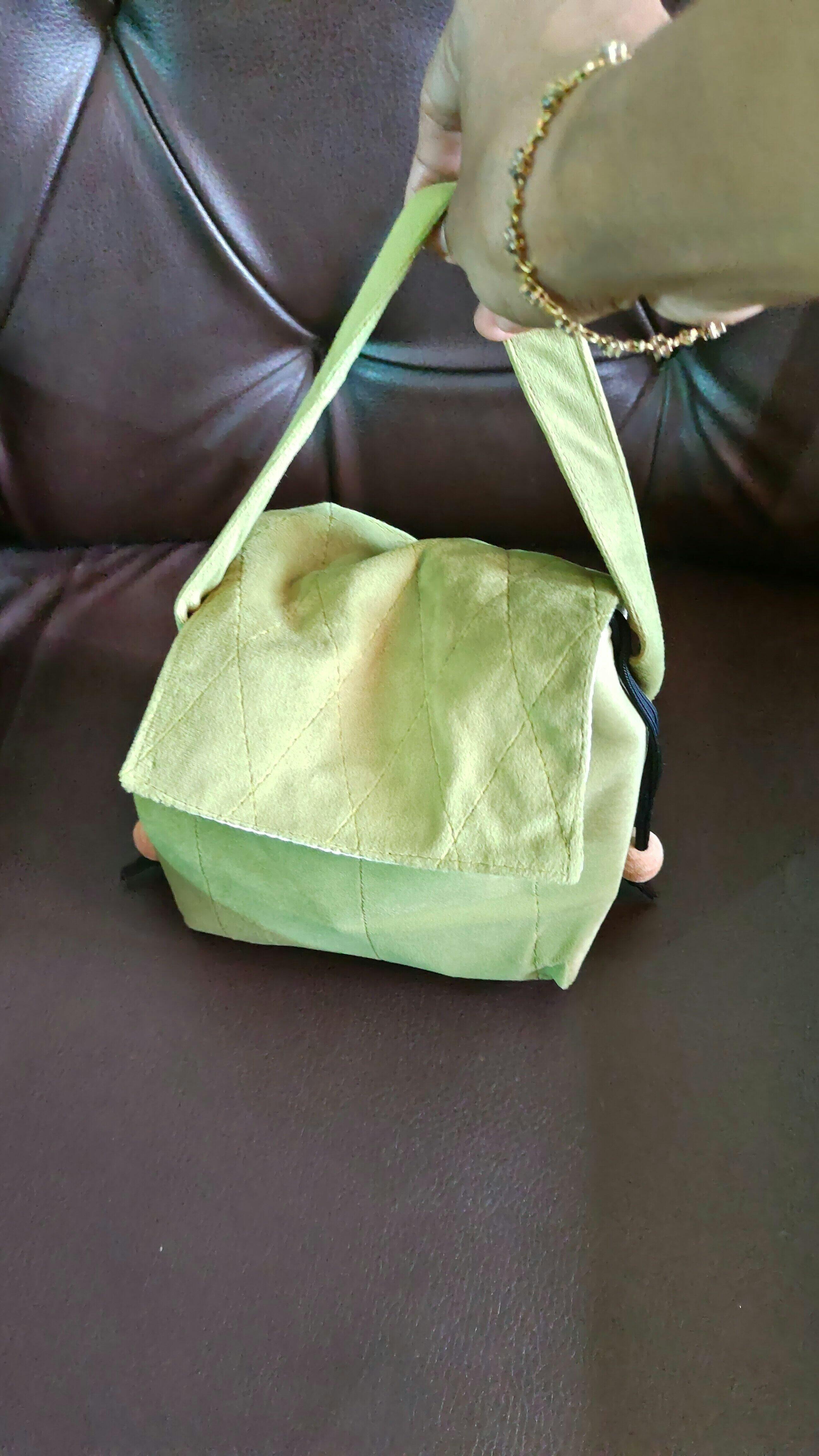 Introducing the Olive Green Suede Mini Karrier - a luxurious and functional makeup organizer designed for the modern woman. Crafted from quality suede, this pouch exudes serenity and sophistication. The drawstring closure ensures your essentials stay secure while allowing for easy access.
