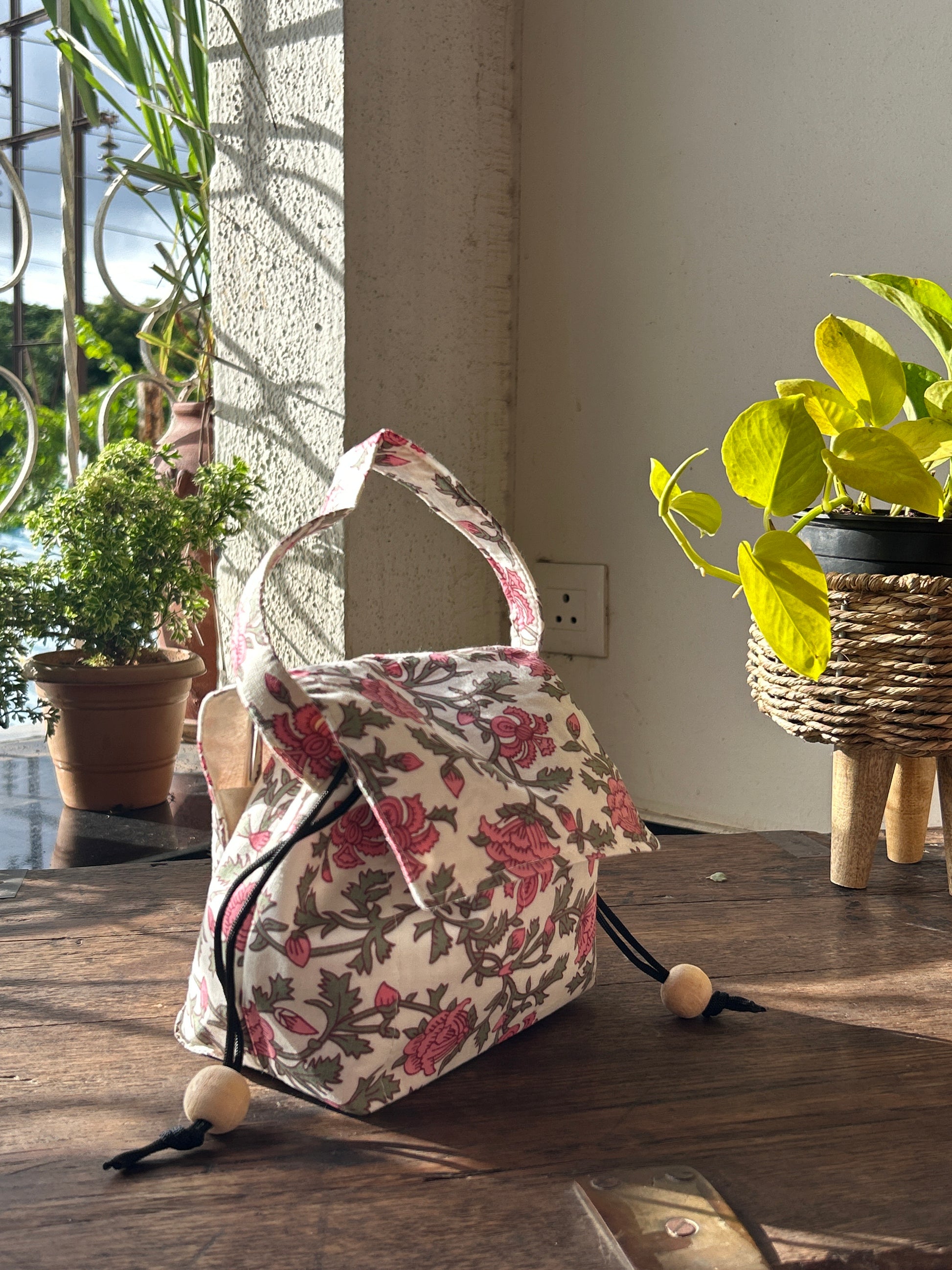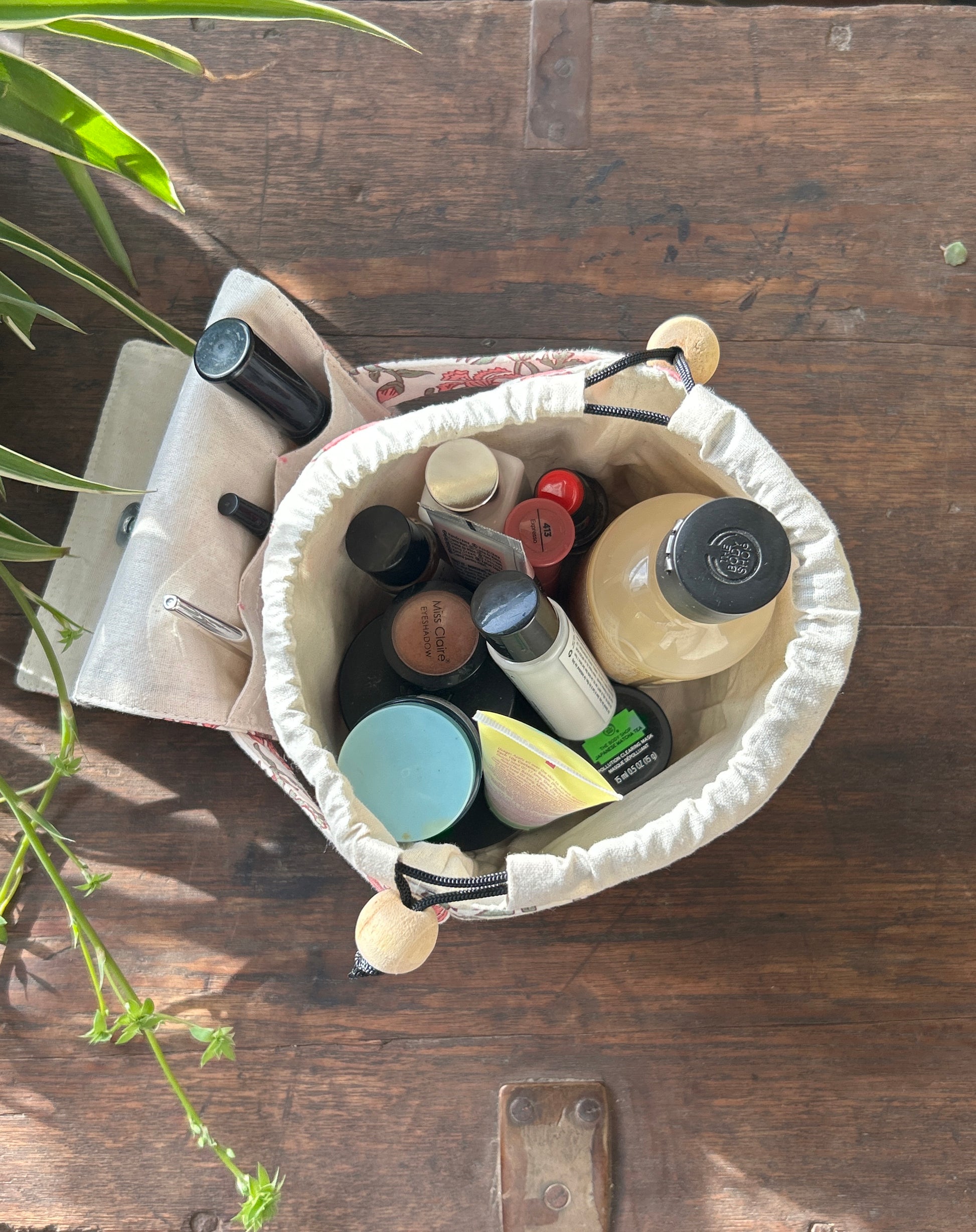 Add a charm to your beauty essentials with our Pink Petal Bloom Makeup Organizer. Made from eco-friendly organic cotton and adorned with a vibrant floral-inspired print, this pouch is as practical as it is stylish.
